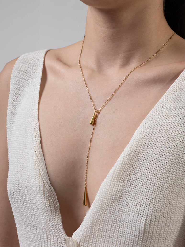 El collar RAPHAELLA tiene un diseño asimétrico en forma de gota que combina delicadeza y audacia, ofreciendo versatilidad y un estilo moderno y dinámico.