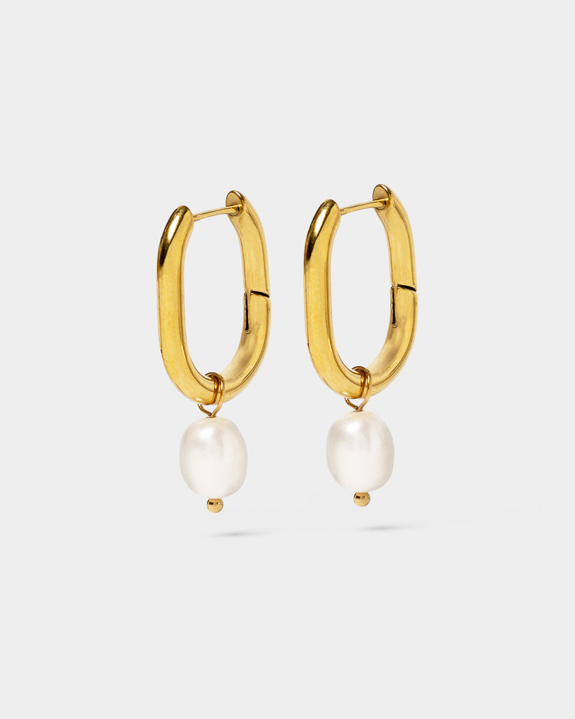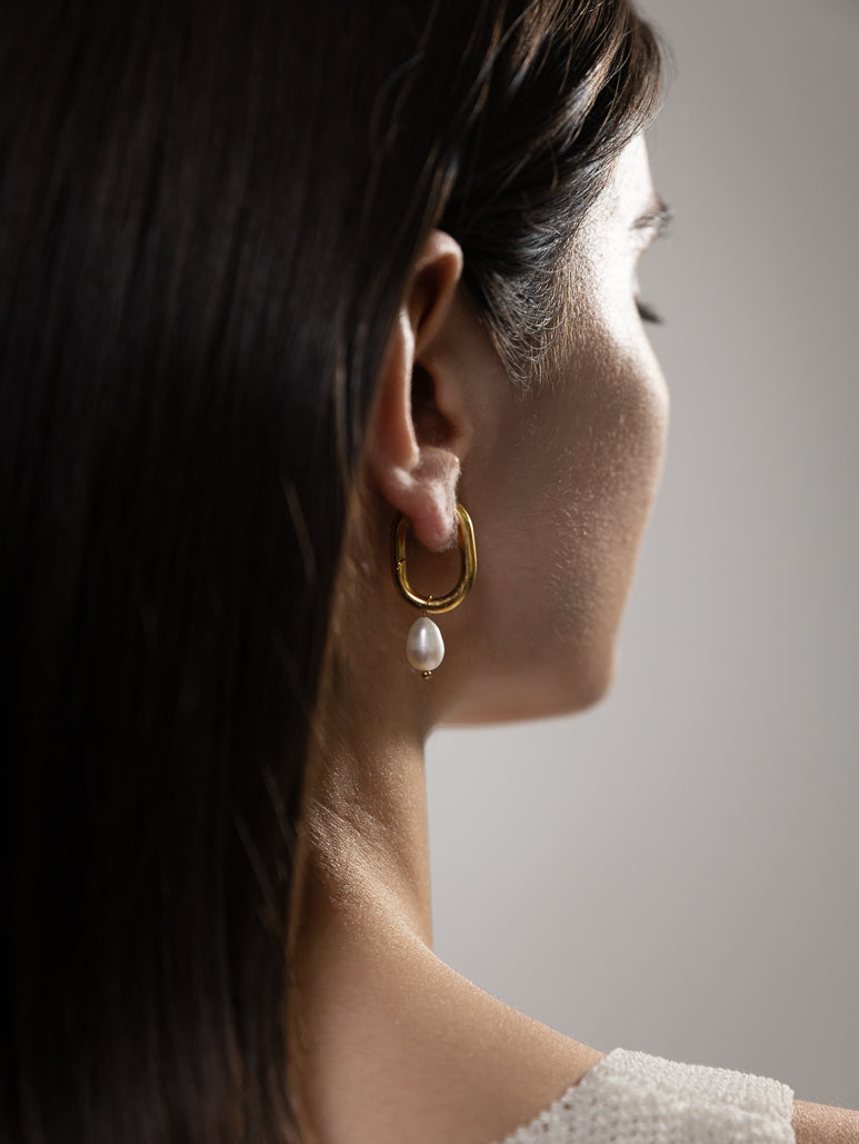 Aros CALYRA con abalorio de perla colgante, un toque distinguido y casual que combina elegancia y versatilidad para realzar cualquier look.